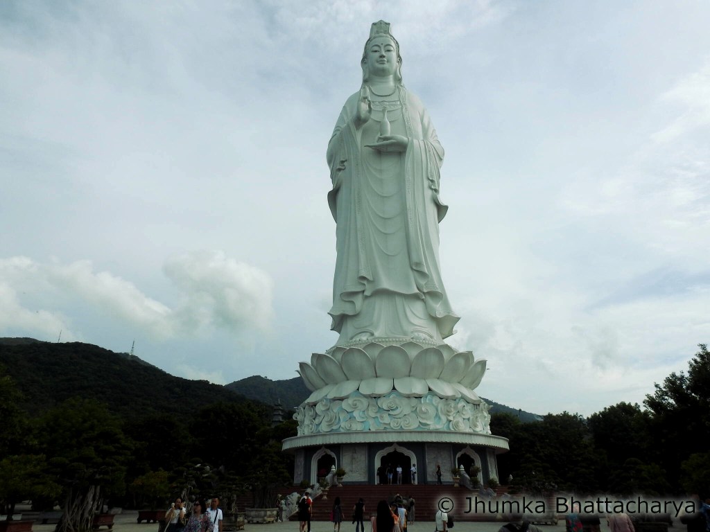 Next day we went to Monkey Mountain to visit 67 meter tall statue of Lady Buddha or Quan Am (Protector of Da Nang), made of a single marble. Then we visited the 5 Marble mountains that symbolized the five elements of earth. We went into the largest mountain to visit Am Phu cave. It was a long walk with difficult stone steps. We came back after lunch.