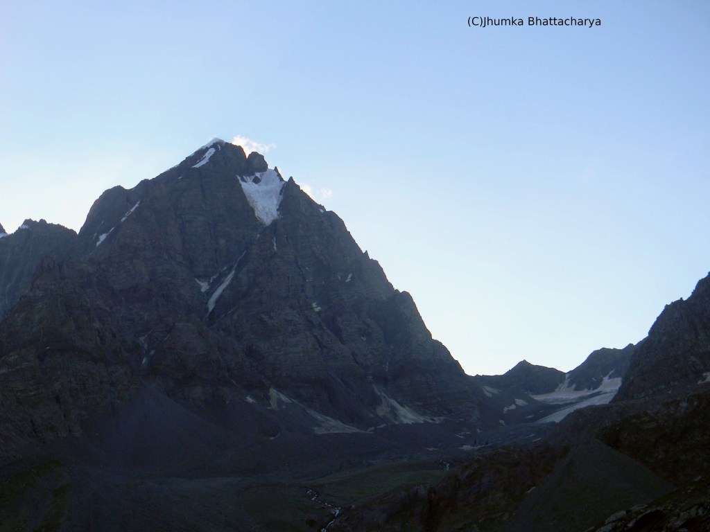 After a long time when had I fallen asleep I did not know, suddenly there was an uproar of “Jai Bhole” which awoke me up. I opened the tent flap and saw the Mani ( the jewel ) on Mt Manimahesh. It was a unique phenomenon. The crescent moon appeared on the peak in such a way that it seemed like a diamond. The sky was absolutely clear. Gradually the crescent moon rose up, innumerable stars and constellations were clearly visible. It was a surreal feeling to be there. Suddenly I saw a shooting star. Tears came in my eyes and I thought there was nothing that I could ask God to gift me. I never thought my long wish for visiting Manimahesh would be fulfilled in such a way.