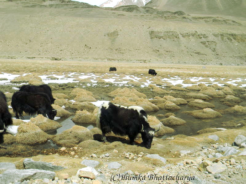 The road was really spectacular with different hues of the mountain and topography. On the way I saw Suraj Tal. We crossed four mountain passes, Baralacha La, Nakee La, Lachung La, Tanglang La. Actually there are five but we avoided Rhotang Pass going through Atal tunnel. In places, there were shepherds with their innumerable sheep. The name of the bridges we came across were funny like Twing Twing, Brandy, Whisky etc. We talked about the creativity and intriguing nature of BRO people. There were army posts in several places. We had our lunch at Pang.
