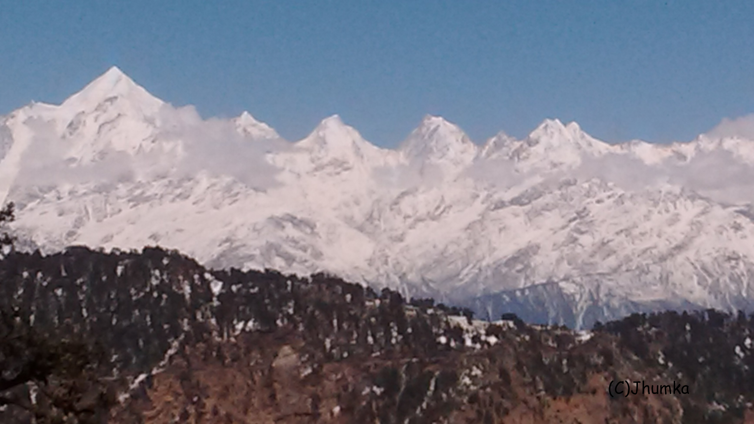 Dantu is a beautiful small village with the view of Panchachulli peaks. We spent two nights there at the home stay of Mr Mahesh Jung. His brother Manoj ji was a great cook. First morning was a little cloudy. All the peaks were not visible. We felt a little disheartened. Everyone of our team went to the base camp and zero point after puri vaji breakfast, while I stayed back sitting idle, baking myself under pleasant heat of sun, watching nature. Dhauli Ganga river initiated from the glacier of Panchachulli.