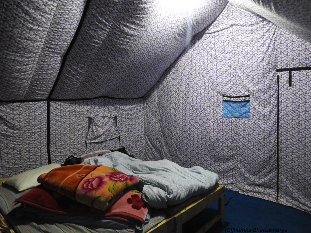 When the car reached Tanki Manang it was 10PM. The village was sleeping. The moon was peeping through the clouds. Luckily our driver previously had informed a hotel nearby jeep stand to arrange dinner for all 6 passengers that he was carrying including himself. My friend was so ill mentally and physically that she was unable to stand properly; the driver and another person carried her and her luggage. She was hungry, scared and tired( later I realized it was all fake). She slept on the sofa of the dining hall. She could not eat properly and was out of breath. I kept myself calm and served her like a typical manager of a travel agency. She met me on a place during Rupkund trek, she informed us that she had done a few treks, it was unexpected to me that she proved herself so vulnerable in every way all through the tour. I lost my water bottle in the jeep during this chaos.