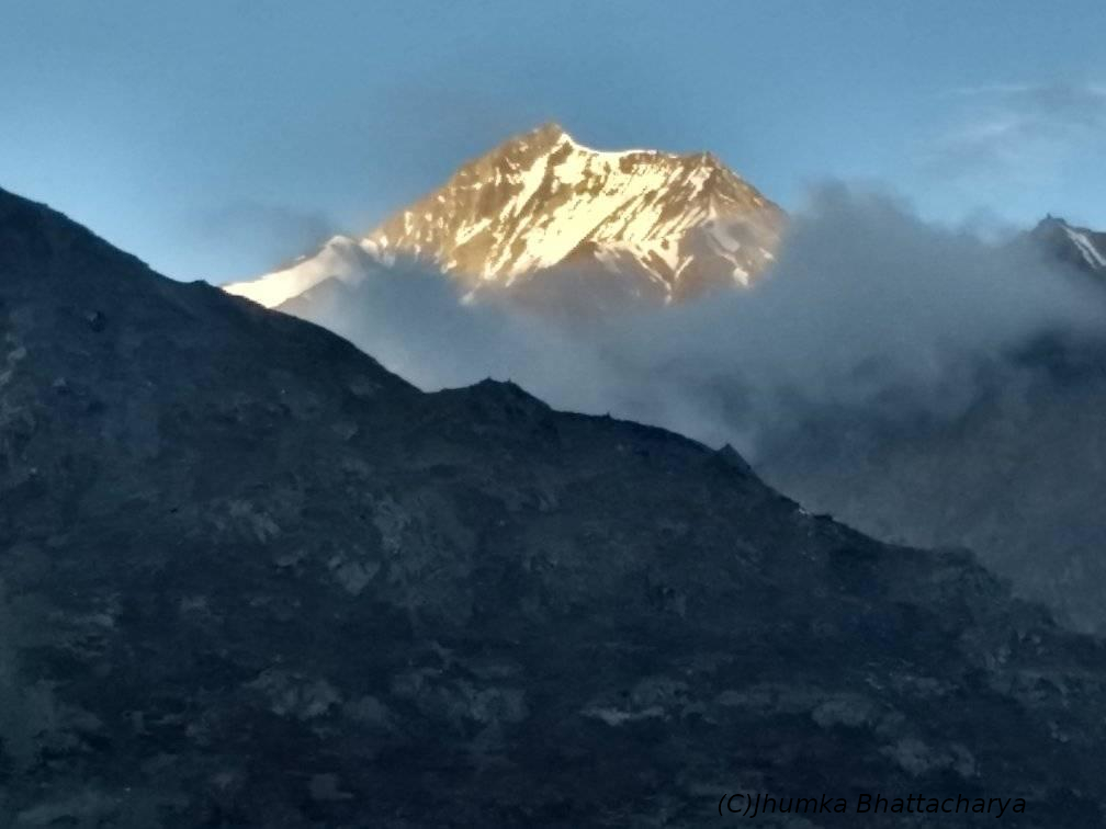 At Chame we had breakfast break. Jery (Jalebi) Puri of Chame is famous in Manang. When we went upward we could see nothing as it was cloudy. This time I looked around at Chame, a beautiful village. Manaslu peak was visible from there. From Dharapani the whole Manaslu range was visible, but I had to capture it only on my mobile as I lost my camera lens cap at Jomsom, I had to keep the camera under packing for its safety. We reached Besishahar in the afternoon, nearly at 4 o’clock and boarded in a hotel with the help of our jeep driver. Next day we reached Kathmandu.