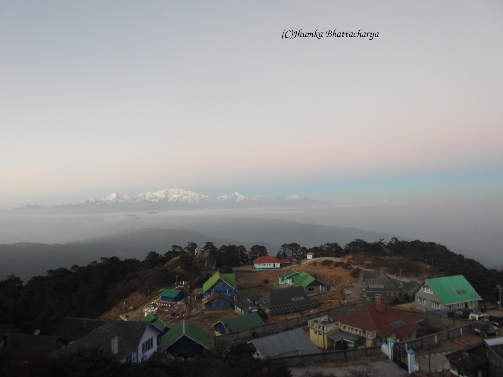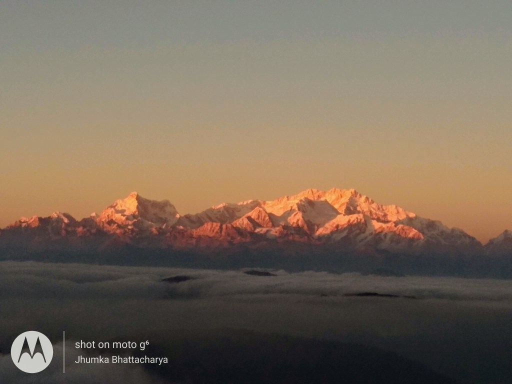 Next day after breakfast we started for Falut. We were late because there were some young guys in the group, and few of them kept on having excess alcohol every night. So every day they woke up late. It is one of the disadvantages of a group tour that one can not get every member to be like minded. We witnessed Himalayas from some view points on the road. After a particular point our organizers decided to return as we were getting late. The road was also very hazardous. This was the most hectic day of the trip. We came down to Tumling in the afternoon and had our lunch. After lunch I had to take a bath to clean myself as I felt very dirty and dusty. I changed my clothes too. Then I went to see sunset at Tumling. Tumling is a small beautiful hamlet. There were some trekkers and travelers came for Sandakfu summit. Next morning I witnessed my third sunrise of this trip. Then after breakfast we started for Manebhanjan. Kanchenjunga accompanied us till Manebhanjan. From Manebhanjan we changed our vehicles and went for Shiliguri.